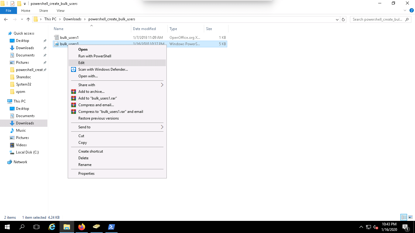 3. Type a name for the script as bulk_users1.ps1.