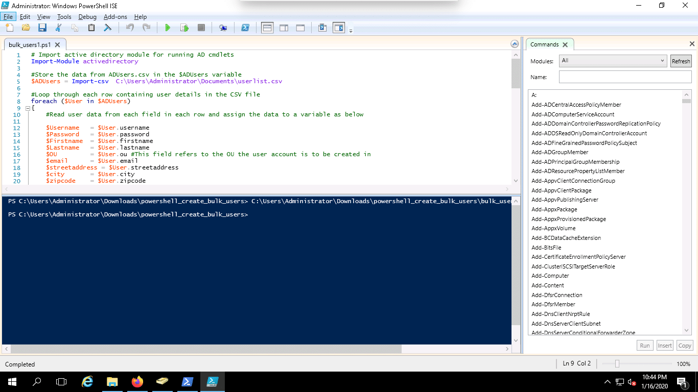 Now, you will need to create the PowerShell script to import the users from a CVS file.