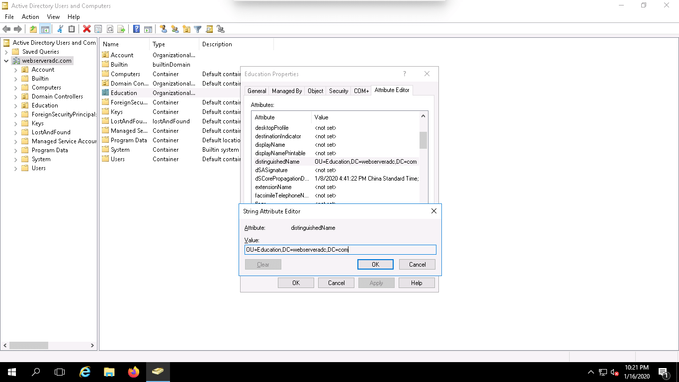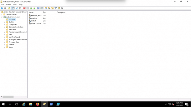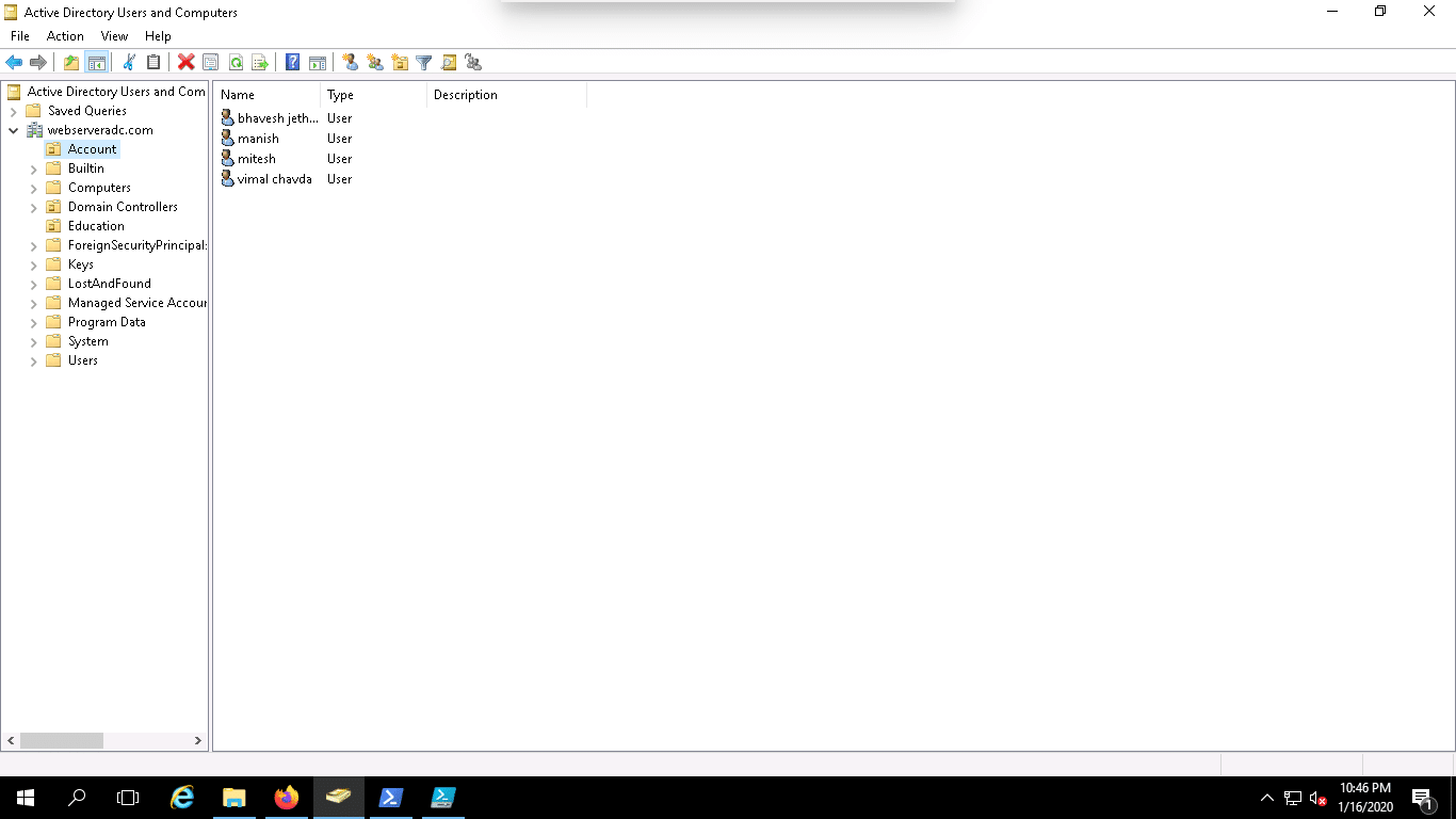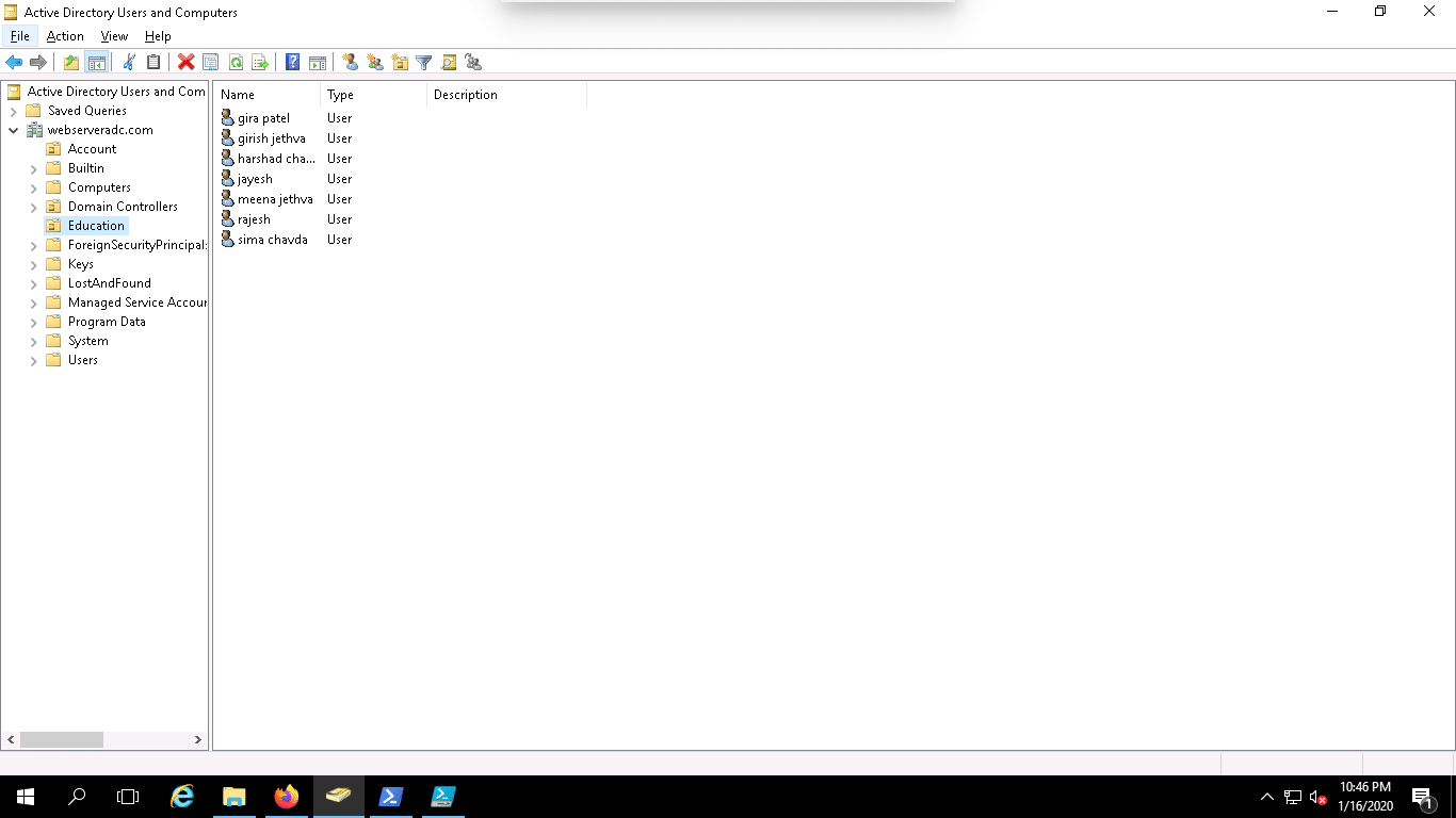 Now, open the Active Directory Users and Computers and check the Education and Account OU.