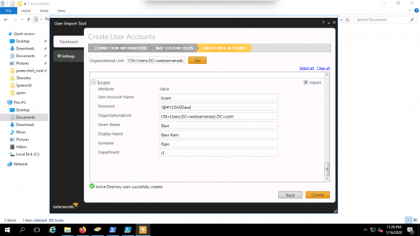 In this section, we will download and install SolarWinds tool, create a CSV file with all user details and import all users from CSV file with SolarWinds tool.