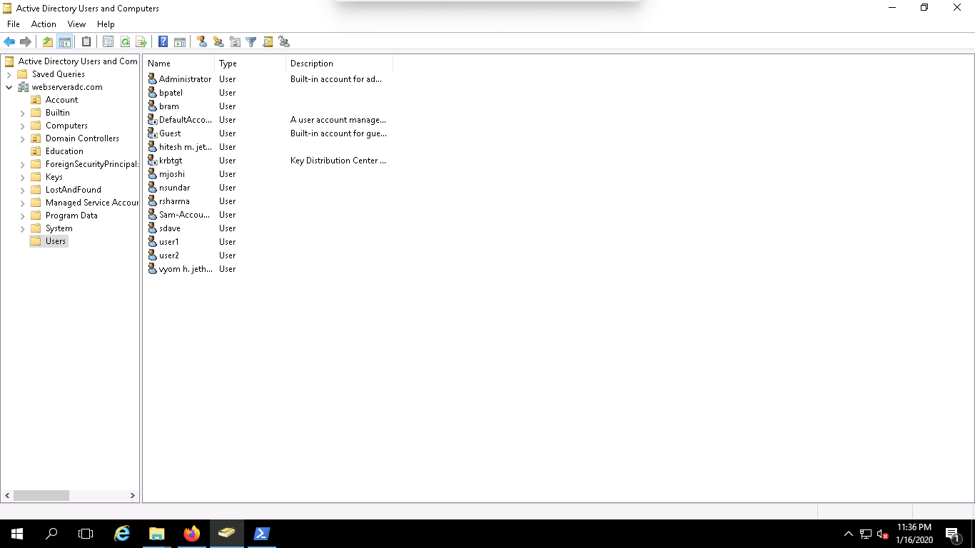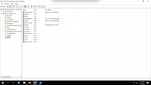 Now, open the Active Directory Users and Computers and check the Users OU whether user accounts are created or not as shown below: